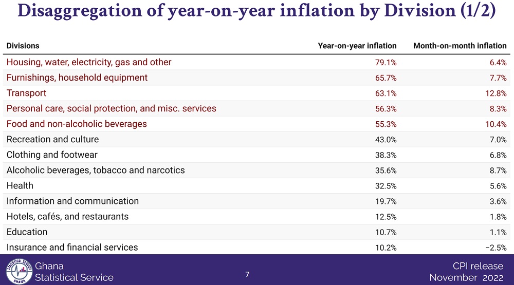 Ghana's year-on-year inflation surged to 50.3 per cent in November, up from 40.4 per cent in October, the Ghana Statistical Service announced today (Wednesday, December 14, 2022).