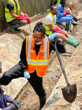 The award winning hitmaker joined the boys to clear the sand-choked gutters at the Dzorwulu Footbridge from morning till the evening. His motivation was rooted in his experience around the world and how the energetic youthful population could be used as a catalyst to development in Ghana and Africa as a whole.