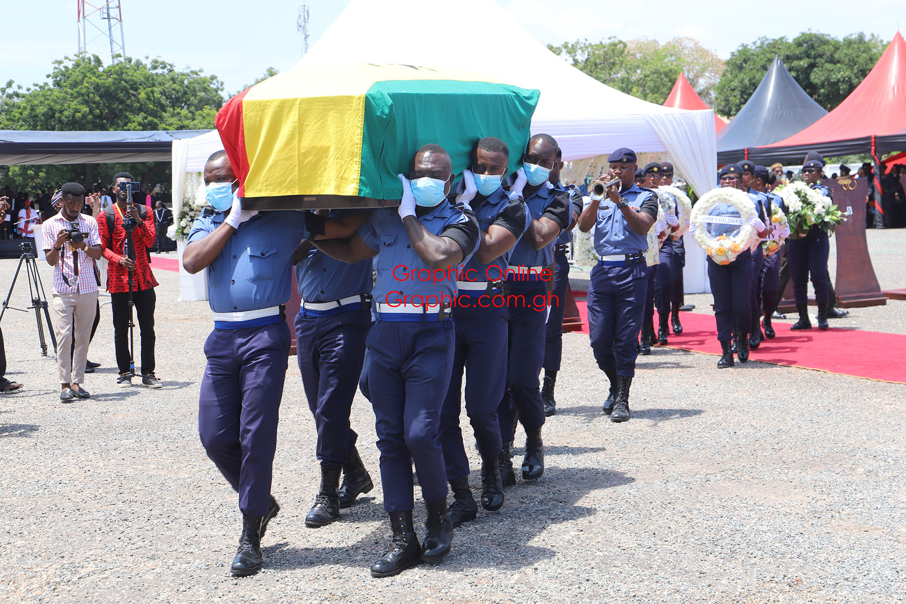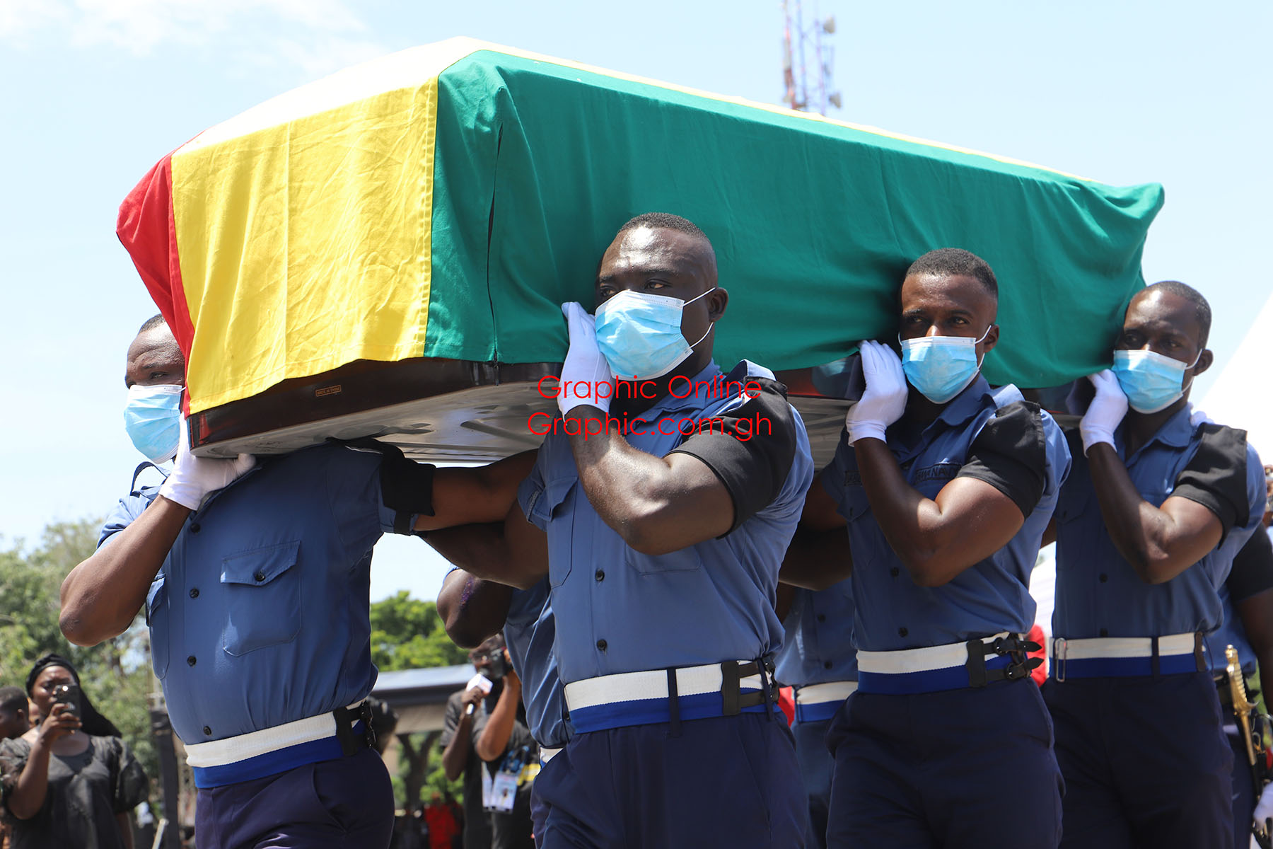 Hundreds of mourners thronged the forecourt of the State House where a state funeral was held for the late legendary Highlife musician Nana Kwame Ampadu on Friday, October 7.