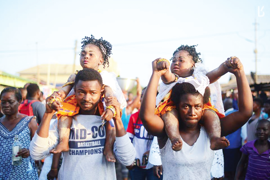Once this is done, the bowl containing the leftovers used in bathing them are carried in a procession and dumped along the Korle Naabu.