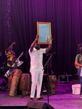 The citation reads: "With humility, artistry, and a deep love for the culture of his homeland, Berima Amo stands as a true ambassador of highlife music. It is with profound admiration and heartfelt gratitude that we present this citation to him - for his artistry, his leadership, and his enduring commitment to the soul of Ghanaian music."