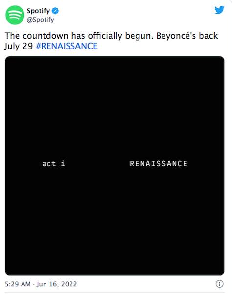 She put them out of their misery on Thursday morning, by sharing the words "act i … RENAISSANCE" on her accounts.