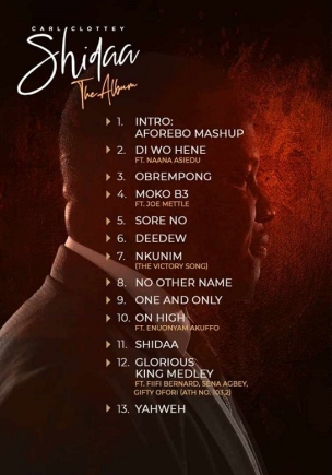 Shidaa features some of Carl Clottey's well known songs such as One and Only, Deedew, Aforeba, Moko B3 ft Joe Mettle and Shidaa.