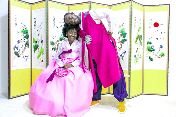 By their own narration, they met when KOD came to her family’s shop to buy fabric. She made an outfit for him and the relationship progressed into the lovely union they have now.