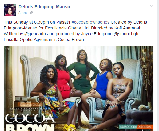 In a Facebook post, Deloris known as Delay wrote, “this Sunday at 6:30pm on Viasat1 #cocoabrownseries".