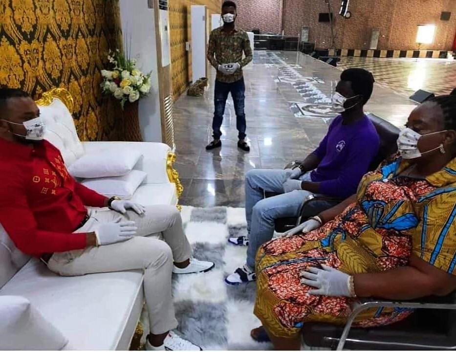 The controversial preacher who goes by the moniker Angel is seen in a photograph making the rounds on social media wearing a face mask and hand gloves during what appears to be a consultation session.