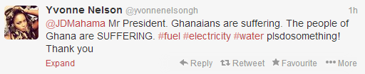 In a blunt tweet Friday afternoon, Yvonne asked the President via his handle, @JDMahama, to "do something" because Ghanaians were "suffering".