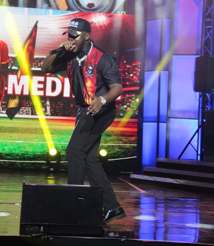 His costume alone showed that he meant business as he came on stage clad in a red and gold football jersey and shorts with gold sunglasses whch got patrons screaming.