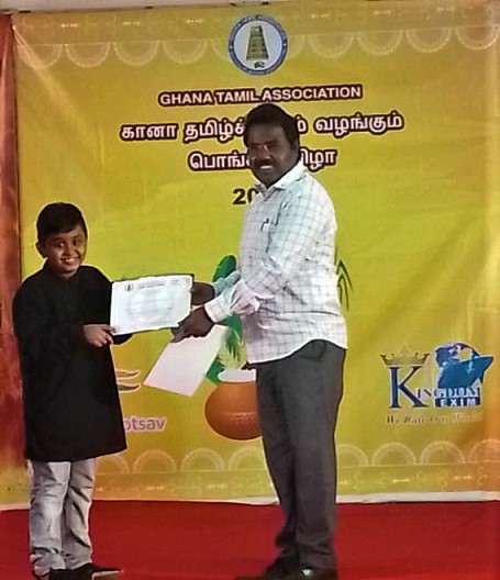 The president of GTA, Mr Elangovan Sukumaran, presented an ornament to the Chief Executive Officer (CEO) of Kingdom Exim Ghana Limited, Dr James Gnanaraj Rajamani and the Managing Director, Dr Immanuel Paulraj Rajamani as a token of the association's gratitude.