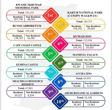 The Kwame Nkrumah Memorial Park remained the most popular attraction, while nature lovers continued to flock to Kakum National Park and Bunso Arboretum.