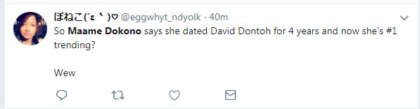 “Date people who can make your trend like Maame Dokono in the near future!,” Another twitter user, @AfroBlaqAfrica stated.