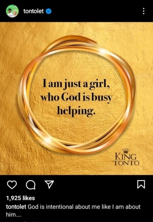 Tonto Dikeh’s recent post acknowledging God’s presence in her life has gone viral, especially in light of reports about the collapse of her ex-husband Churchill’s marriage with colleague actress, Rosy Meurer.