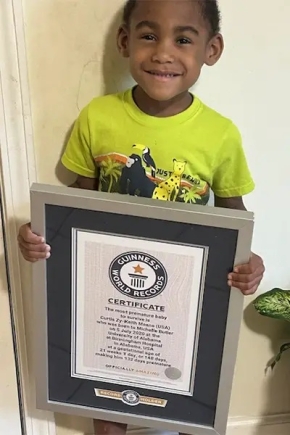 Curtis Zy-Keith Means (USA) was born 132 days premature, at a gestational age of 21 weeks 1 day.