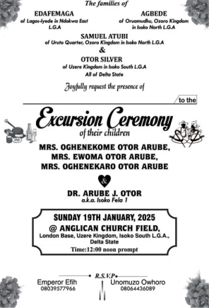 Arube’s foster son and one of the RSVPs, Emperor Efih (Oscar), shared details about the ceremony.