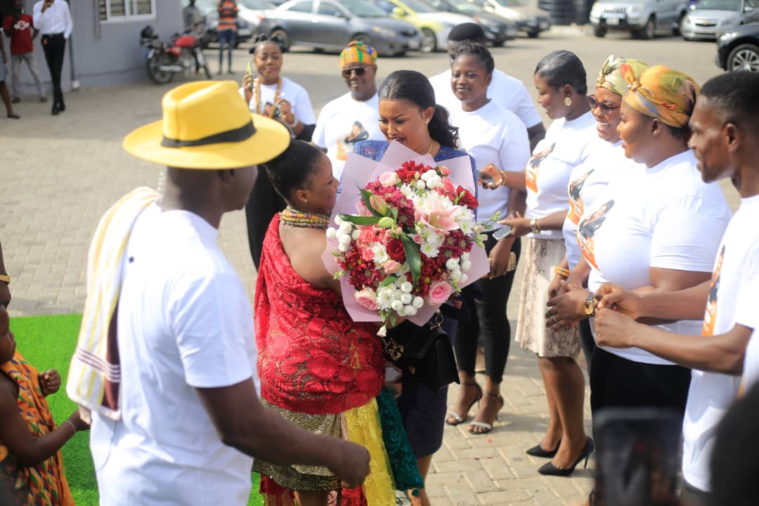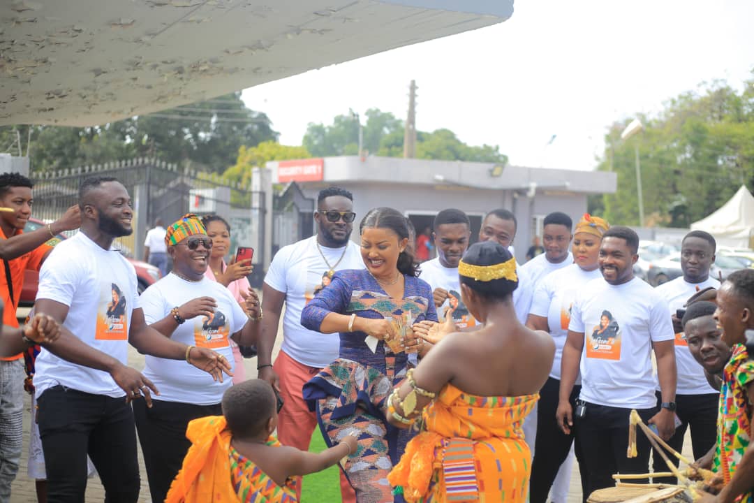 When she arrived at Media General’s compound, she was welcomed by traditional dancers and was presented with a bouquet of flowers by the winner of TV3’s talented kids season 10, Nakeeyat Dramani.