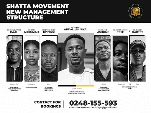 Shatta Wale announced the new management structure in a Facebook post, introducing a refreshed line-up intended to strengthen the Shatta Movement. Key appointments apart from Sammy Flex's include Juwaid Abdallah Sika as General Manager for Bookings and Requests, Gifty Nkrumah as Road Manager, Daniel Kwesi Kpingbi as Personal Assistant to the artiste, Solomon Ashong (Solash) as Regional Coordinator for Merchandising, and Kester Ashong Teye (Nawtyboi) alongside Stanley Dartey (Paq) on the Music Production Team.
