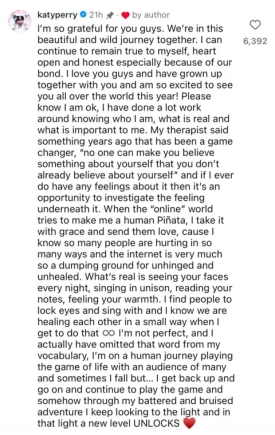 Perry left a comment expressing her gratitude, telling fans: "I love you guys and have grown up together with you and am so excited to see you all over the world this year!