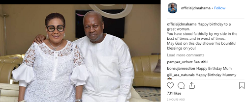 Mr Mahama in a post on Instagram said his wife had stood by him in good and bad times.