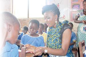 Gifty Ofori was received by the administrative and teaching staff of the Adamorebe Anglican Basic School with warm hearts as the children welcomed her and her team with poetry recitals, singing and dancing.