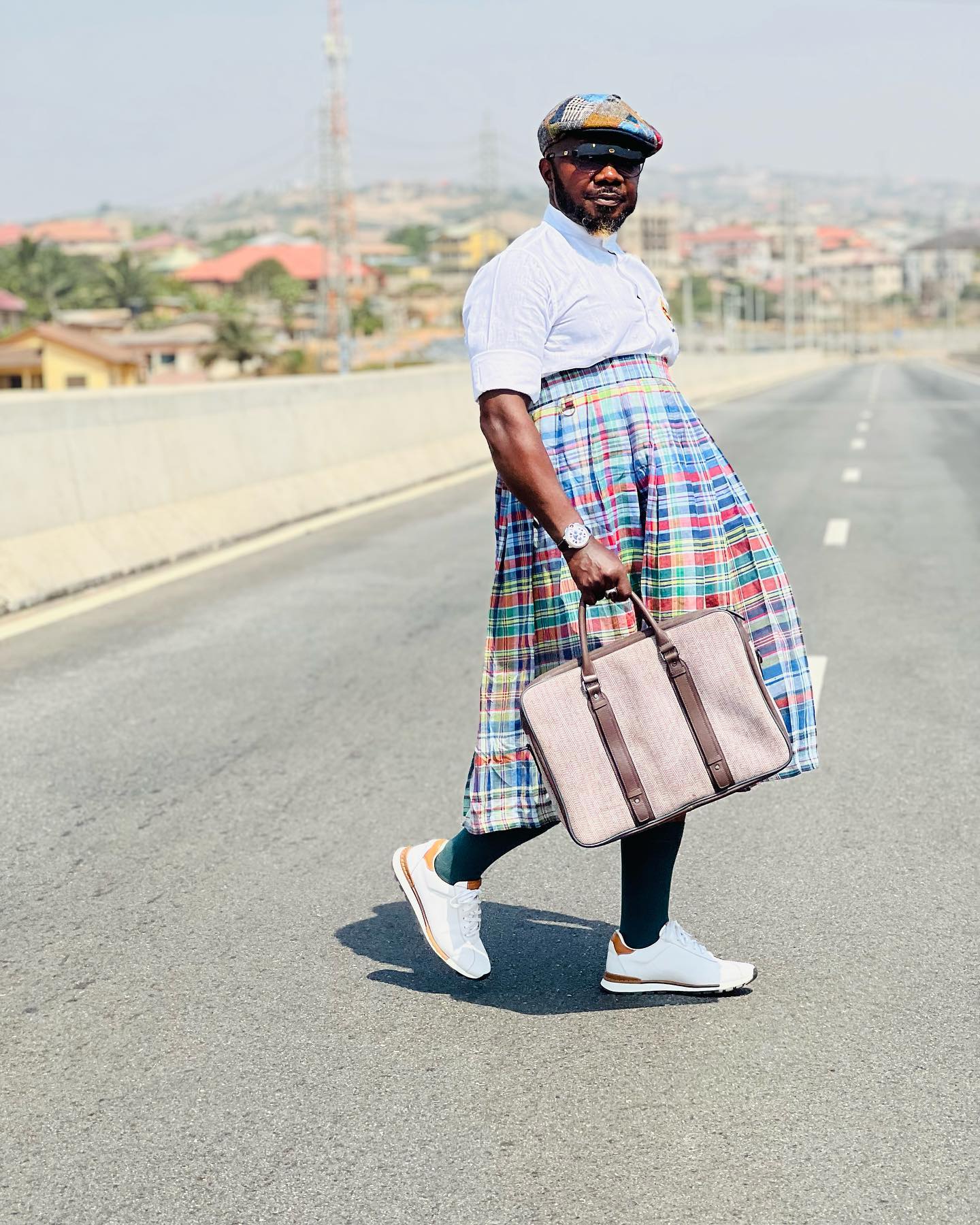 It is not rare to see Osebo, who runs a shop, 247 Boutique Zara Man Shop at North Kaneshie, going unconventional and sporting a shirt and a high-waist long skirt, a frock, mini dress, T-shirt over kilts plus a tote bag or briefcase among others.