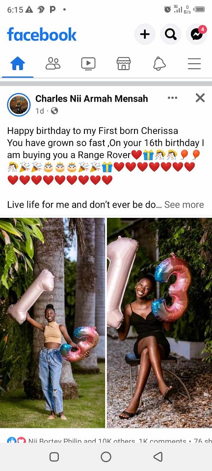 Sharing photos of her daughter on his Facebook page to mark the day, Shatt Wale said, “Happy birthday to my firstborn, Cherissa. You have grown so fast. On your 16th birthday, I am buying you a Range Rover. Live life for me, and don’t ever be down-spirited. Daddy loves you so much !!!”