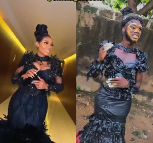 Dacoster recreated Iyabo’s appearance by creating a video showing every aspect of her outfit, poses, and makeup, using materials like a garbage disposal nylon for the dress and paper clips as artificial nails.