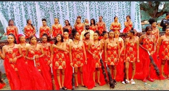 The groundbreaking event unfolded in a visually striking manner, as captured in a video where Harrysong is seen amidst a congregation of women, all adorned in uniform traditional attires—a clear indication of the newly minted brides.