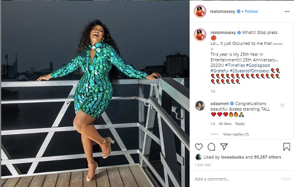 “What!!! Stop press Lol… It just occurred to me that:——>This year is My 25th Year in Entertainment!!! 25th Anniversary… 2020!!! #Timeflies #Godisgood #Grateful,” she wrote.