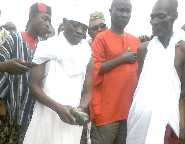 The ceremony saw Felix Atakli, chief priest of Akalonour shrine of Fevie pour libation at the eastern bank of the Volta River to bid the people of Sokpoe farewell to their present day settlement.