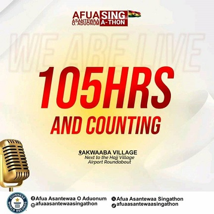 At 9:00am today, Ghana’s Afua Asantewaa hit the Guinness World Records for longest singing marathon by an individual after singing for 105 hours.