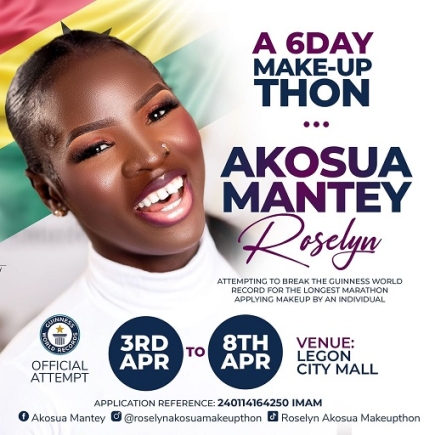 Roselyn Akosua Mantey, a talented makeup artist from Ghana, has made history by breaking the Guinness World Record for the longest marathon applying makeup by individuals.