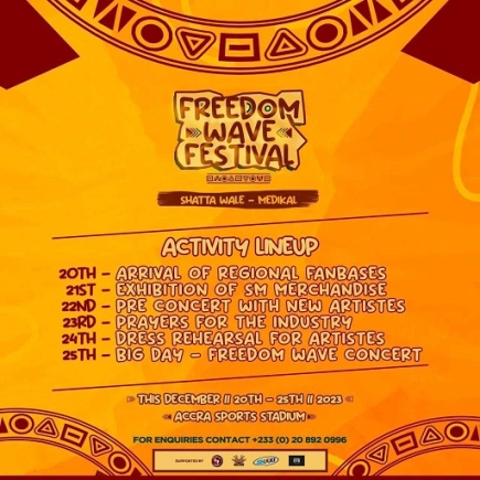 Other activities for the festival are exhibition of Shatta Movement merchandise, pre-concert with new artistes, dress rehearsal for artiste and the Freedom Wave concert on Monday, December 25.
