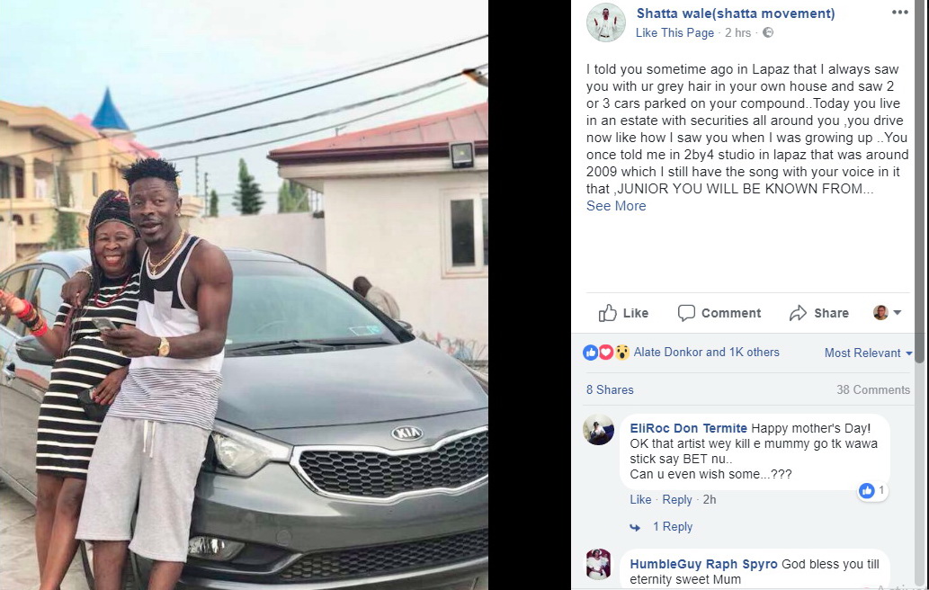 Controversial dancehall artiste Shatta Wale celebrates her mother on Mothers’ Day by recounting how his mother’s words concerning his music career have come true.