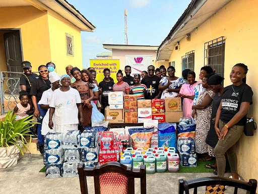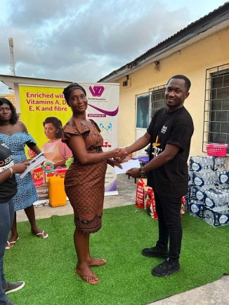 With sponsorship from Nutrifoods Ghana Limited, Pomasidor, and Family Fresh Liquid Soap, Siisi Baidoo and his team presented cartons of Tasty Tom tomato paste, powdered milk, Cowbell coffee, bottled water, and gallons of liquid soap which was shared among all 20 widows.