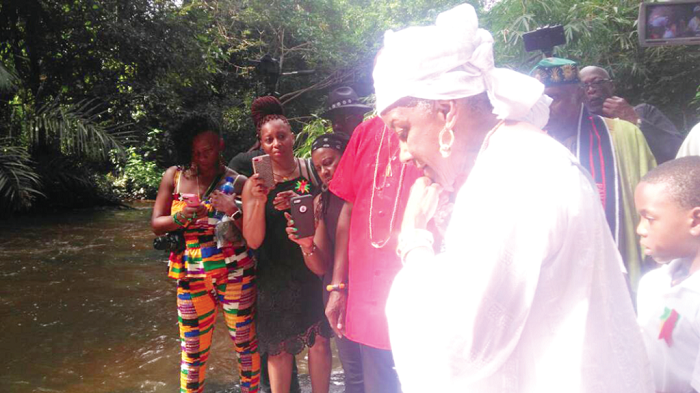 Many other Africans in the Disapora put their feet in the river with a sense of solemnity. Others bath in it while others just washed their teary faces in the river.