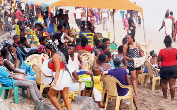 Some holiday revelers at Kokrobite in Accra taking it cool at the beach