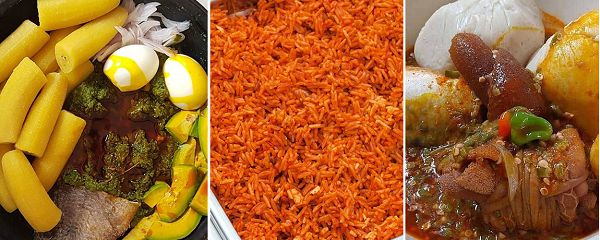 It is often a buffet, fufu with different ‘colours’ of soups, tuo zafi, ampesi, jollof, banku, assorted meats and many more. These foods are usually accompanied by strong assorted alcoholic beverages.