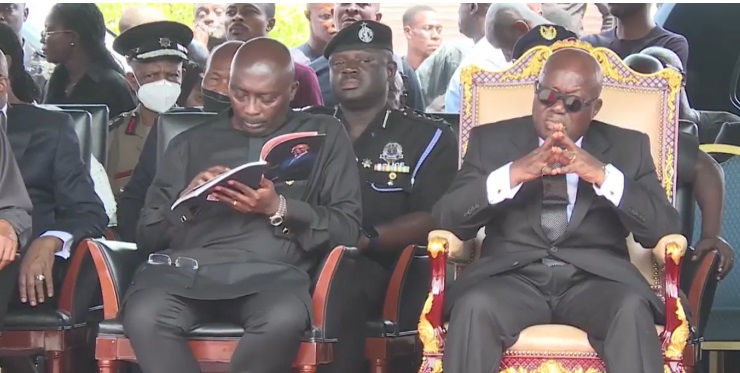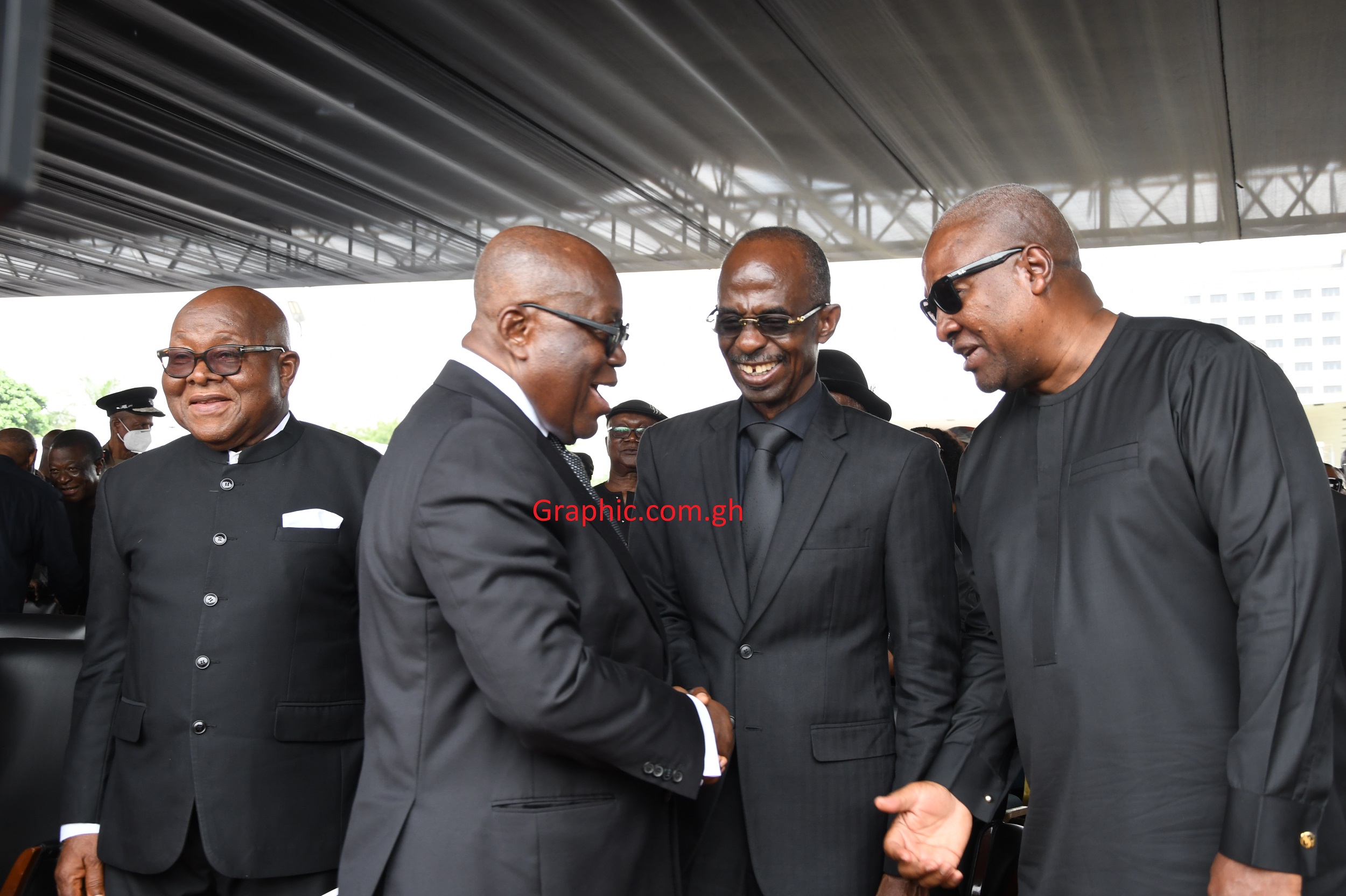 In their shadows were a few ‘charlie wotey’ ladies. Last Thursday was a virtual general assembly of Ghana: The President Nana Akuffo-Addo, his Vice Dr Bawumia, the chief of staff, Yaw Sarfo Marfo, past Speaker Mike Oquaye, (with his son walking in tow); but also past president Mahama, Ibrahim Mahama, and a top hierarchy of NDC party officials, including the new Chairman, Asiedu Nketia fortunately not in battle dress, but disguised in suit.