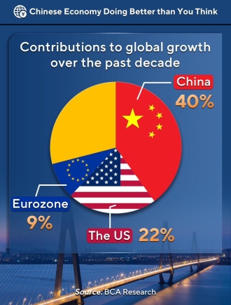 All sorts of comments predicting the collapse of China’s economy keep surfacing every now and then. While interestingly, what has collapsed is such rhetoric itself, not China’s economy. China’s economy keeps growing regardless of the “pride and prejudice” or “tittle-tattle”. According to BCA Research, China has been the source of more than 40% of global growth over the past decade, compared with 22% from the United States and 9% from the euro zone. For many years, some people have dismissed China’s contribution to global growth — or even hyped up the “threat” from a growing China. It is more ironic when some media spread the “China collapse” theory and “China threat” theory at the same time. How can a country pose a threat while it is collapsing? Such paradoxical fallacies fully expose some people's distorted attitude towards China's development.