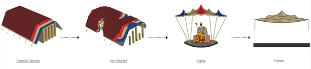 “The design of the National Cathedral carves an identity for architecture rooted in African culture, in Ghanaian heritage and is a ground-breaking architectural expression of African Christianity. The concept for the National Cathedral is born of Christian architectural principles. These principals frequently articulate proportion and orientation in multiples of twelve as a reference to the twelve apostles. The National Cathedral's draped roof form draws from the great symbols of the chieftaincy institution and culture, such as the opulent boaman ceremonial canopies and umbrellas, traditionally used to shade and protect royalty. The National Cathedral takes these symbols of royal and religious veneration ad democratizes them from the individual to the people.