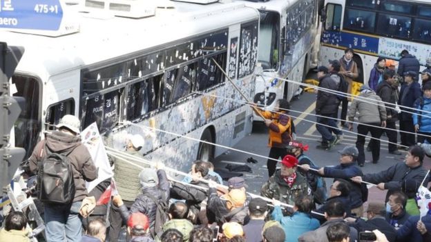 The final decision is being celebrated by many, but as the verdict came through angry scenes erupted outside court. Pro-Park protesters - mostly older conservatives - turned on police. Two people believed to be pro-Park died.
