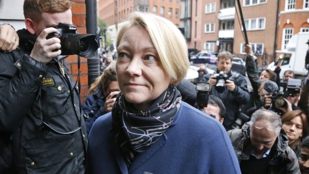 Swedish prosecutor Ingrid Isgren is listening as an Ecuadorean prosecutor puts the questions to Mr Assange.