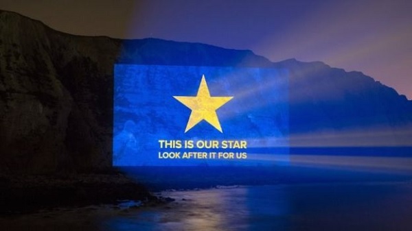 A pro-EU group earlier projected a message onto the White Cliffs of Dover