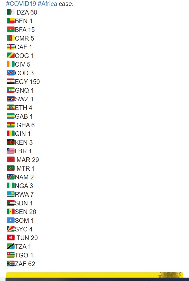 — WHO African Region (@WHOAFRO) March 17, 2020