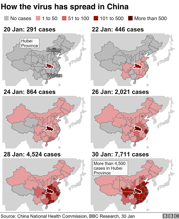 Chinese health authorities said there were 7,711 confirmed cases in the country as of 29 January.