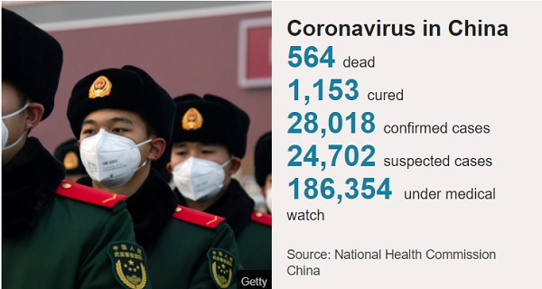 The virus has now killed more than 560 people and infected 28,000 in China.