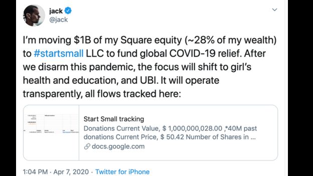 Coronavirus: Twitter boss pledges $1bn for relief effort