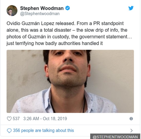 Mexico's security minister, Alfonso Durazo, told Reuters news agency that a patrol of National Guard militarised police came under intense fire from outside the house where they had located Mr Guzmán, forcing them to retreat from the building for their own safety and "to recover calm in the city".