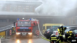 Firefighters are still trying to rescue people and extinguish the blaze at the centre run by the Caritas charity in Titisee-Neustadt, in the Black Forest.