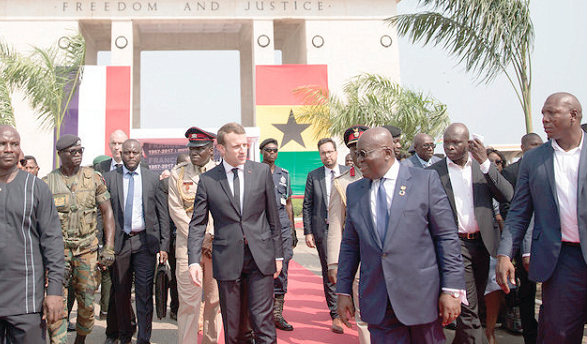 President Nana Addo Dankwa Akufo-Addo and President Emmanuel Macron during an official visit last year